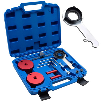 COMPATIBILIDAD ✓ Kit para sincronización y bloqueo de motores Ford 2.0D TDCI diesel montados con correa dentada. Es el indicado para la sustitución de correas en los últimos modelos Ford que presentan un nuevo diseño en el que la correa de transmisión está ubicada dentro de la parte engrasada del motor, lo que comúnmente se llama "correas en aceite". Incluye herramienta para la instalación de la correa dentada, tipo platos, herramienta de alineación del cigüeñal y herramienta de sujeción del volante.