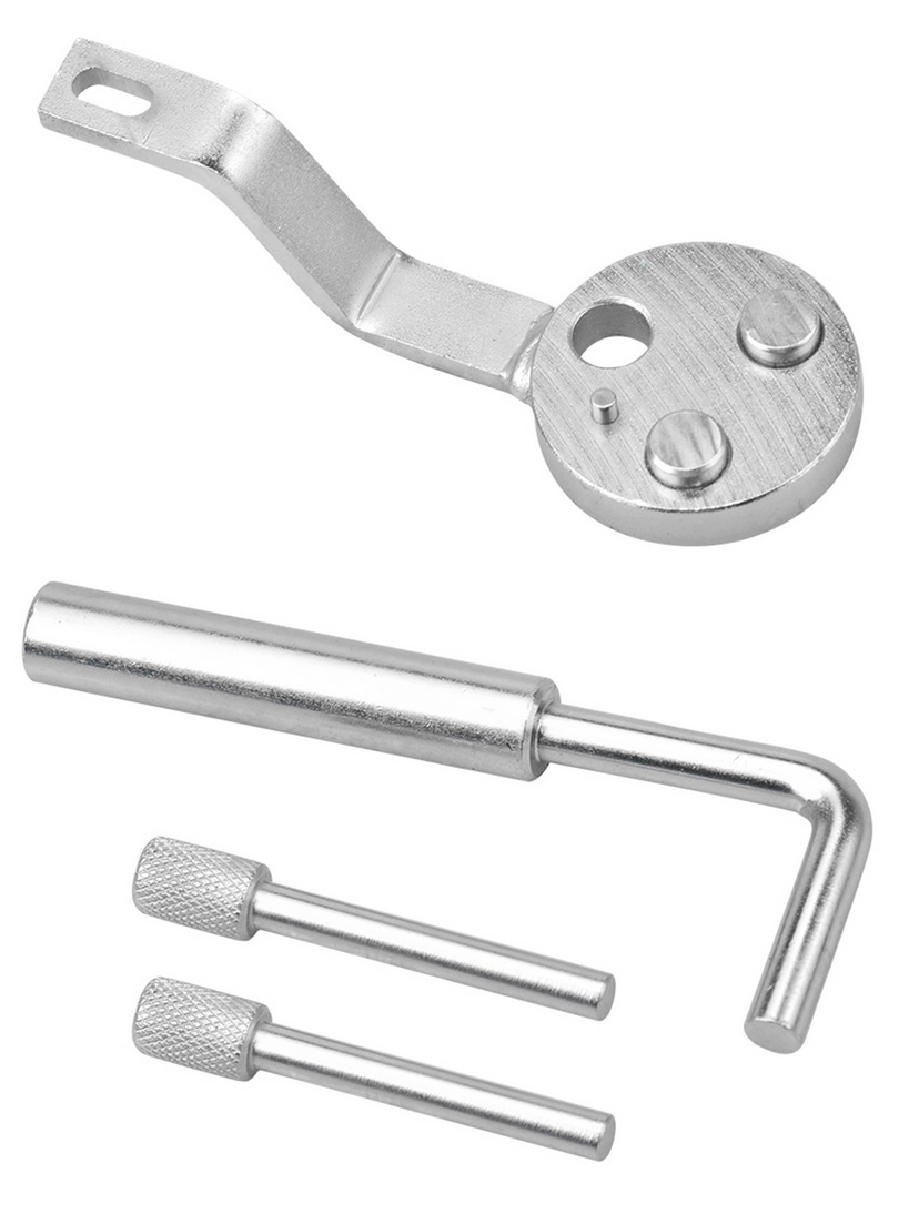 Útil con compatibilidad con motores 2.2 TDCi HDT Common Rail impulsados con cadena. Incluye las piezas necesarias para el bloqueo de cigüeñal, levas, volante, bomba y ajuste de la posición del sensor de PMS (TDC), dejando su posición fijada para el reemplazo de la cadena de distribución y los componentes asociados.