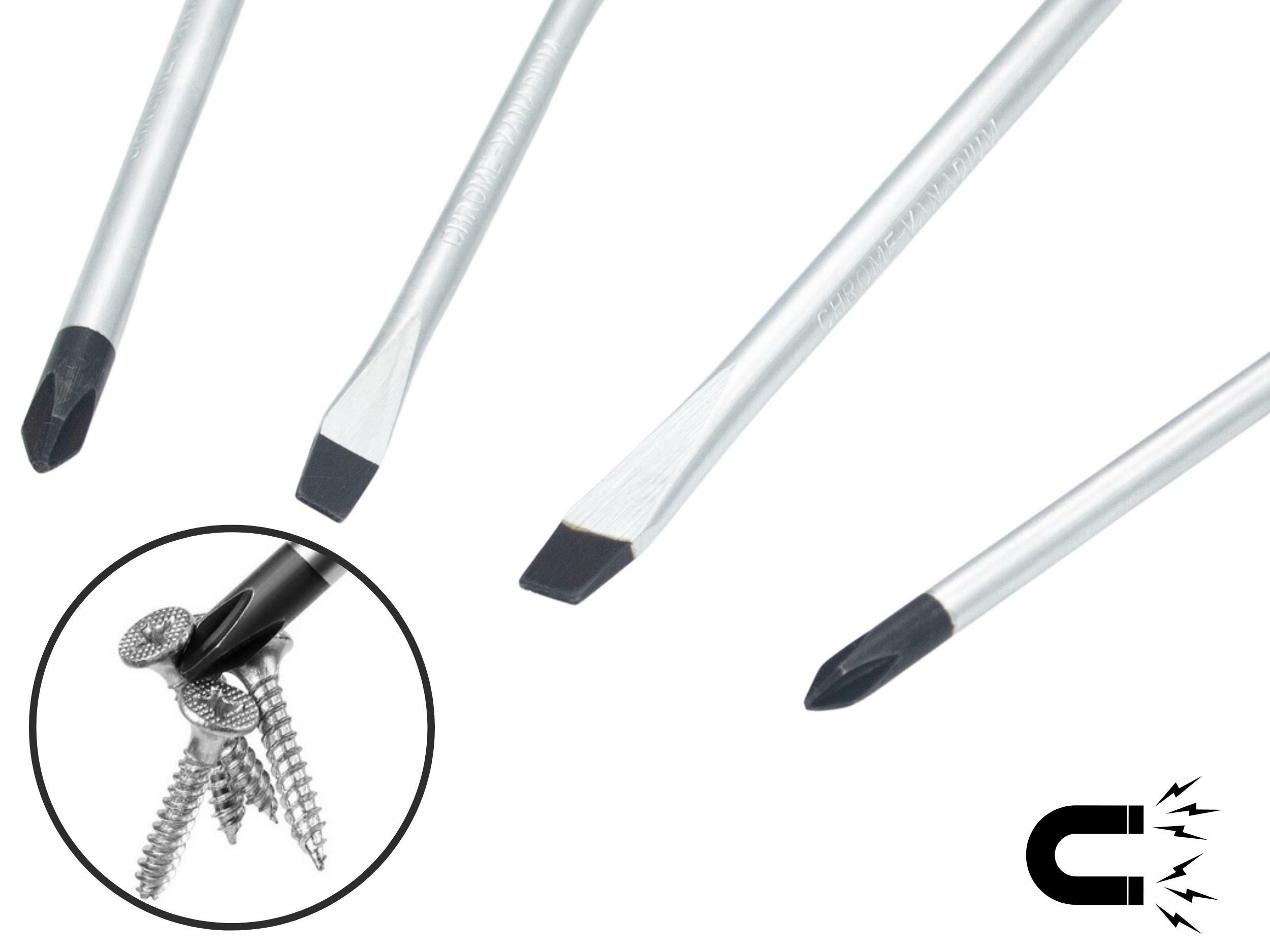Juego de 4 destornilladores largos Planos y estrella 450 mm Cr-V